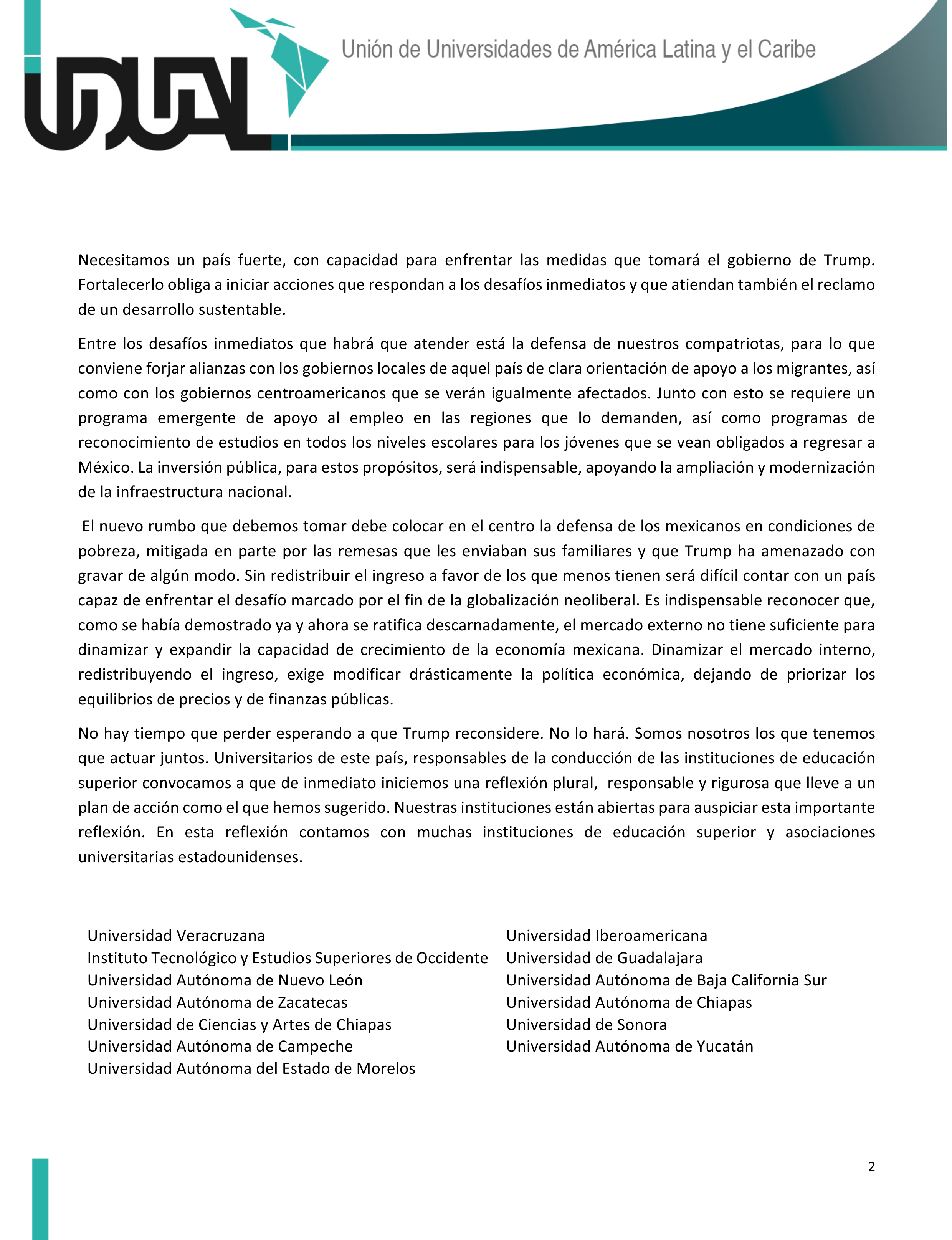 - Universidades se pronuncian ante políticas del gobierno estadounidense